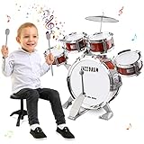 m zimoon Batería de música para niños Kit, Juego Tambor Jazz Junior 5 Tambores con Taburete para Instrumento Musical de Percusión Día ​Festivo Regalo uguete Educativo por Niños Y Niñas Principiantes