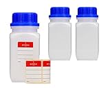 - Tres botellas de boca ancha de 1000 ml muy estables y resistentes a los productos químicos, hechas de plástico LDPE resistente.