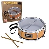 - TAMBOR INFANTIL: Estupendo y estable instrumento musical de madera para niños con correa para el hombro y 2 palos. Dimensiones: diámetro del tambor 20 cm, altura 10 cm